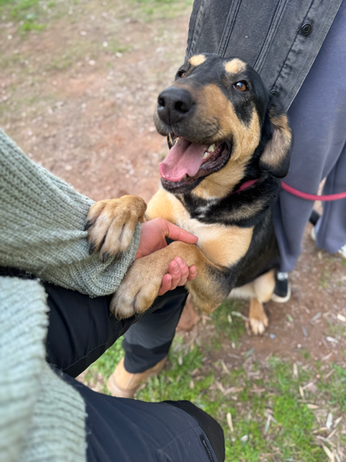 Because she's lived on the streets her whole life, she's used to being able to do her own thing and explore on her own. Therefore, it took her a while to get used to walking on a lead, but now she walks well. So we have seen that she is very open to being trained.