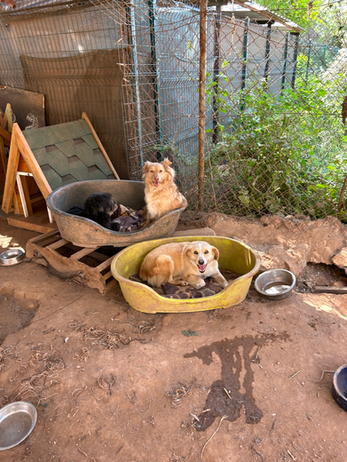 Flower kwam in het voorjaar van 2024 bij ons terecht. Ze leefde in de tuin van een plaatselijk museum, waar de medewerkers een handvol zwerfhonden voeren en verzorgen. Ze was tevreden met haar leven daar, maar helaas werden de andere honden territoriaal en vielen ze haar aan. Op een dag vielen ze haar zo heftig aan dat Flower ernstige verwondingen aan haar poten en buik opliep. De bijtwonden waren zo diep dat ze gehecht moesten worden. Een lokale redder bracht haar naar de dierenarts voor behandeling, maar toen Flower weer beter was, wilde niemand haar adopteren, zodat de redder gedwongen was haar weer in hetzelfde gebied achter te laten. Flower werd opnieuw aangevallen en weer gewond. Het was duidelijk dat ze daar niet meer veilig was, dus vroeg haar redder ons om haar op te nemen.
